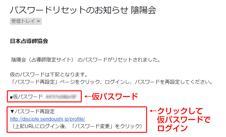 メールに記載されているURLをクリックし、「仮パスワード」で一旦ログインしてください。