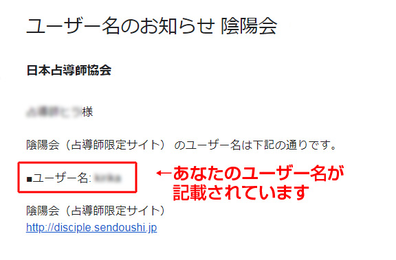 ②ご登録のメールアドレスに下記のメールが届きますので、記載されているユーザー名でログインしてください。